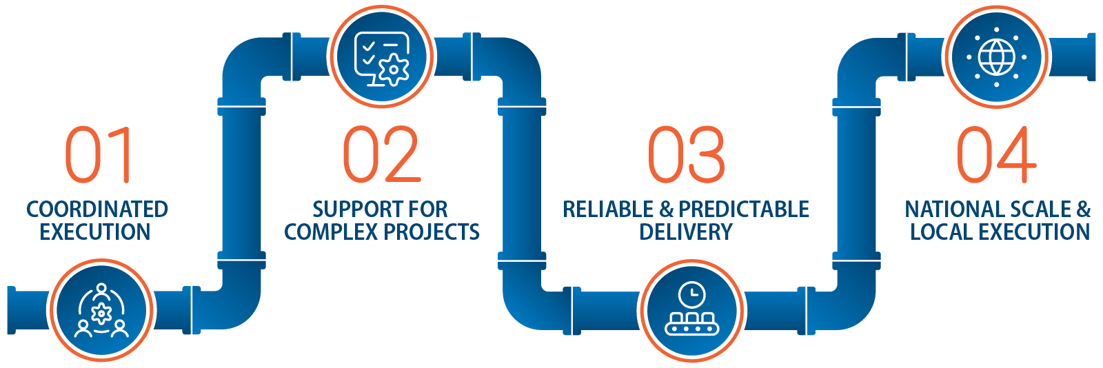 Working alongside EPCs, national and regional contractors, OEMs, and end users, Harrington helps manage the material complexity that can impact schedules and margins. We do not serve as the design authority or engineering firm. Instead, we provide disciplined supply chain program management that strengthens project execution, supports more predictable delivery, and contributes to better financial outcomes.